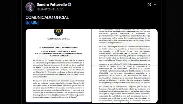 Leer más...La actividad proponía que docentes llevaran un pañuelo blanco para que los alumnos lo intervinieran en una consigna sobre memoria histórica, según un comunicado de Educación local.