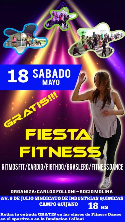 FIESTA FITNESS se desarrollará el sábado 18 de mayo en el Sindicato de Industrias Quimicas en el horario de 18:00 a 20: 30 hs .
