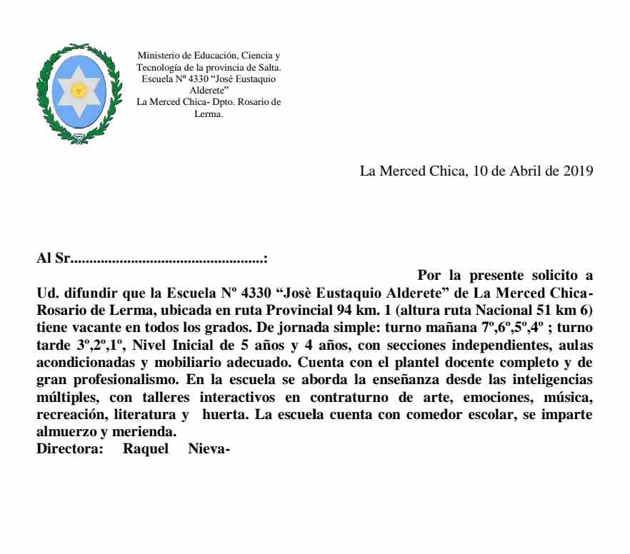 Raquel Nieva, directora de la Eustaquio Alderete cuenta que el plantel de docentes es completo y muy profesional. Tiene las secciones independientes, y acondicionadas con mobiliarios adecuados .