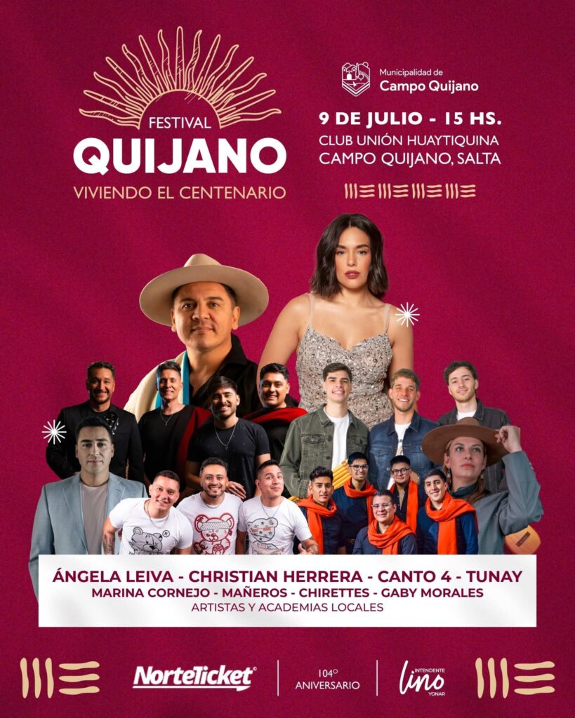 El próximo miércoles 9 de julio, Campo Quijano vivirá una jornada histórica y festiva al celebrar sus 104 años de fundación con el gran festival “Viviendo el Centenario”.