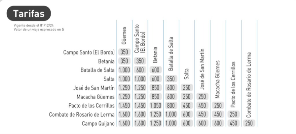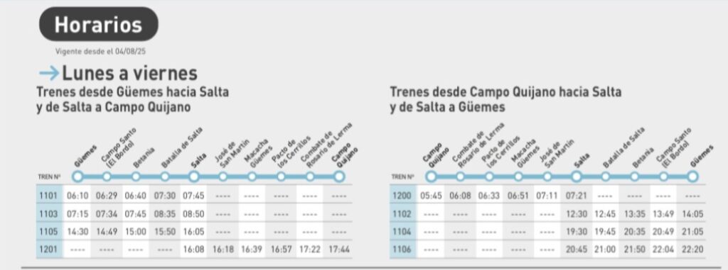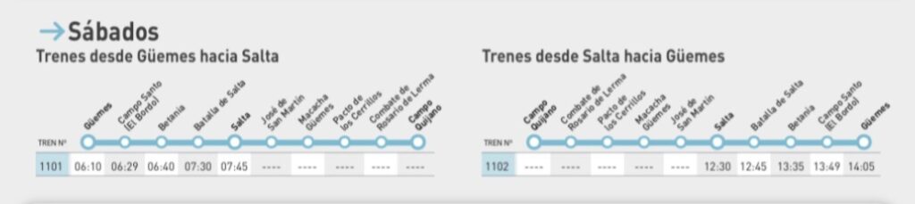 Por su parte, los sábados se mantendrá una frecuencia por sentido entre Güemes y Salta, con un ligero aumento de tiempos de viaje.