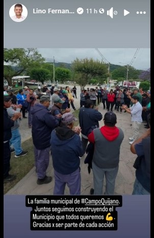 Imágenes tomadas del estado de WhatsApp del intendente de Campo Quijano, Lino Fernando Yonar, correspondientes al viernes 14 de noviembre.