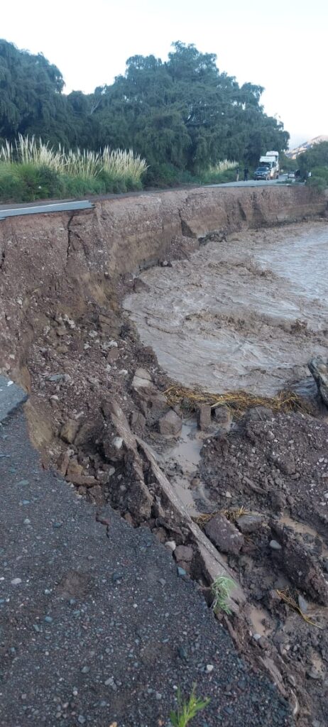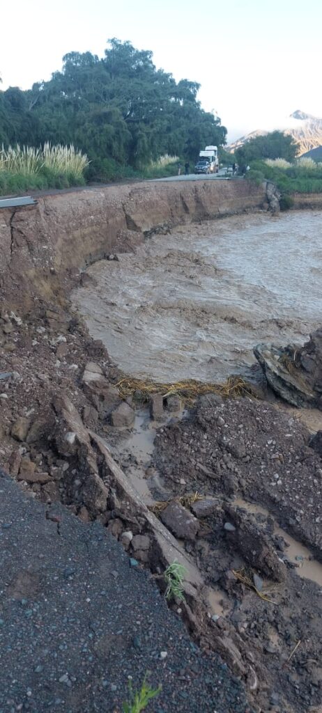 La Ruta Nacional 51 permanece con corte total a la altura del kilómetro 134 debido a un importante derrumbe ocasionado por la crecida del río, que arrastró barro, piedras y terminó socavando la cinta asfáltica.