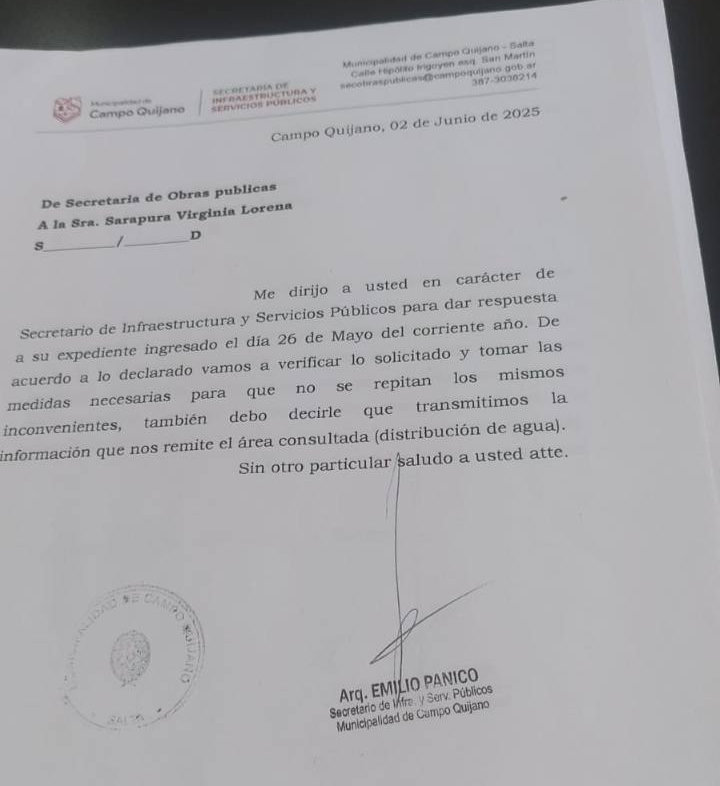 Y este reclamo, desde hoy, ya no es solo de una vecina: es un tema instalado en la agenda pública de Campo Quijano.
