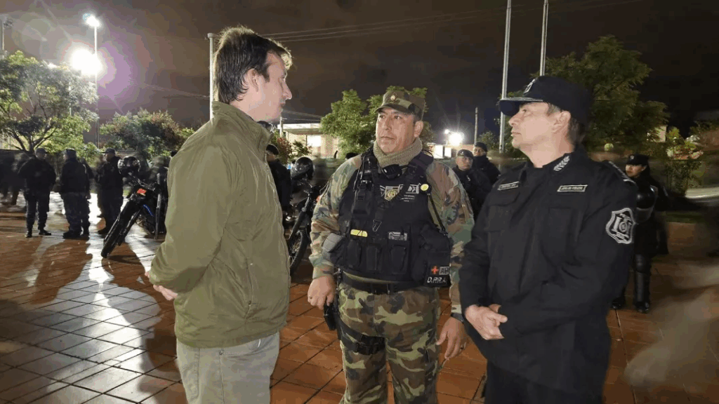 Esta madrugada, el ministro de Seguridad, Gaspar Solá Usandivaras; el jefe de Policía, Diego Bustos; el coordinador de Fiscales, Pablo Rivero; y el fiscal penal de Rosario de Lerma, Daniel Escalante, a cargo de la investigación, encabezaron la etapa logística y de articulación previa a la ejecución del megaoperativo llevado a cabo con más de 120 efectivos para desarticular la banda criminal más grande de abigeato que operaba en el Valle de Lerma.