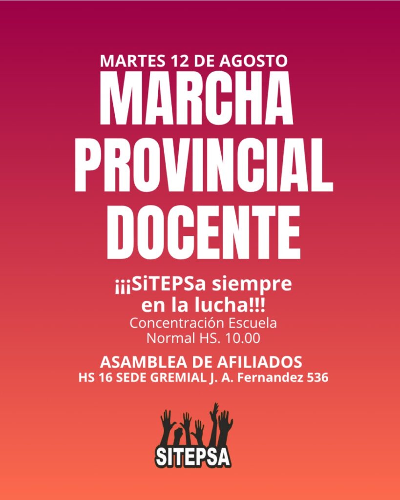 Cervera anunció que el martes 12 de agosto se realizará una marcha desde la Escuela Normal hasta el centro de la ciudad, seguida de una nueva asamblea a las 16 horas en la sede sindical, donde se evaluarán los pasos a seguir.