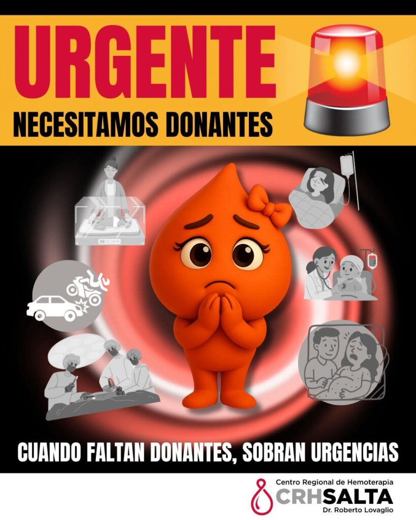 Quienes deseen donar en forma espontánea pueden hacerlo en la sede del Centro Regional de Hemoterapia, Bolívar 687 (Salta), de lunes a viernes hábiles, de 7 a 17 y los sábados, de 7 a 12.