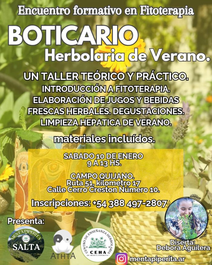 Este sábado 10 de enero, en la localidad de Campo Quijano, se lleva adelante el Encuentro formativo en Fitoterapia “Boticario – Herbolaria de Verano”, una propuesta teórico-práctica destinada a quienes buscan incorporar saberes sobre el uso responsable de las plantas medicinales y el cuidado natural de la salud.