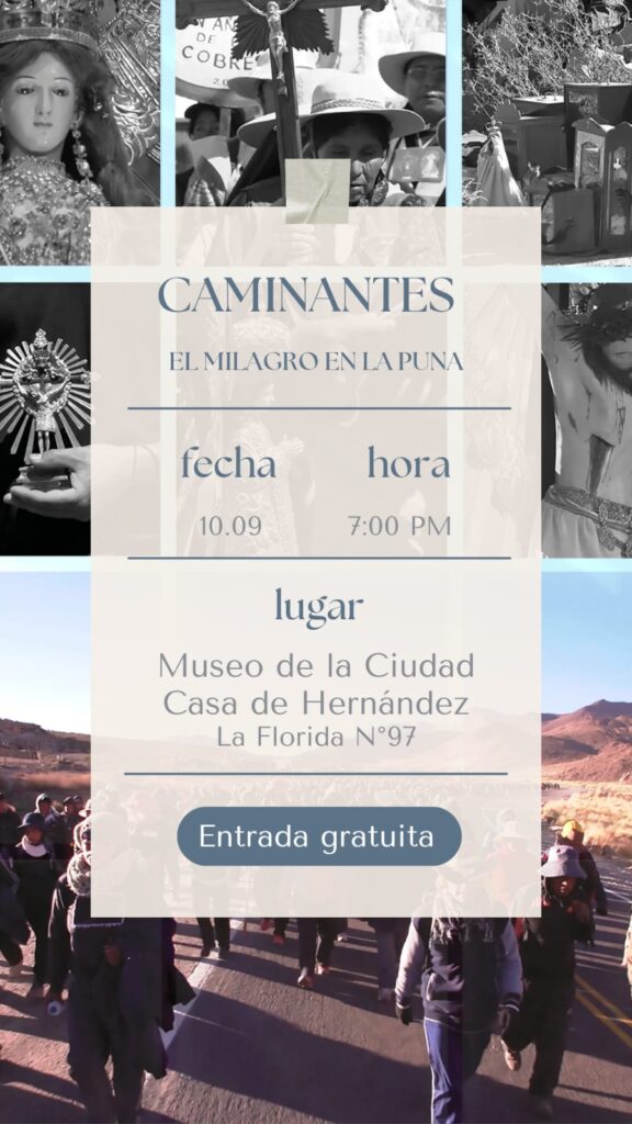 En el marco de las festividades en honor al Señor y la Virgen del Milagro, se presentará en Salta el documental “Caminantes”, una obra que retrata la fe y la tradición de los peregrinos de la Puna. La proyección se realizará el próximo miércoles 10 de septiembre a las 18:00 horas en el Museo de la Ciudad Casa Hernández (La Florida 97), con entrada libre y gratuita.