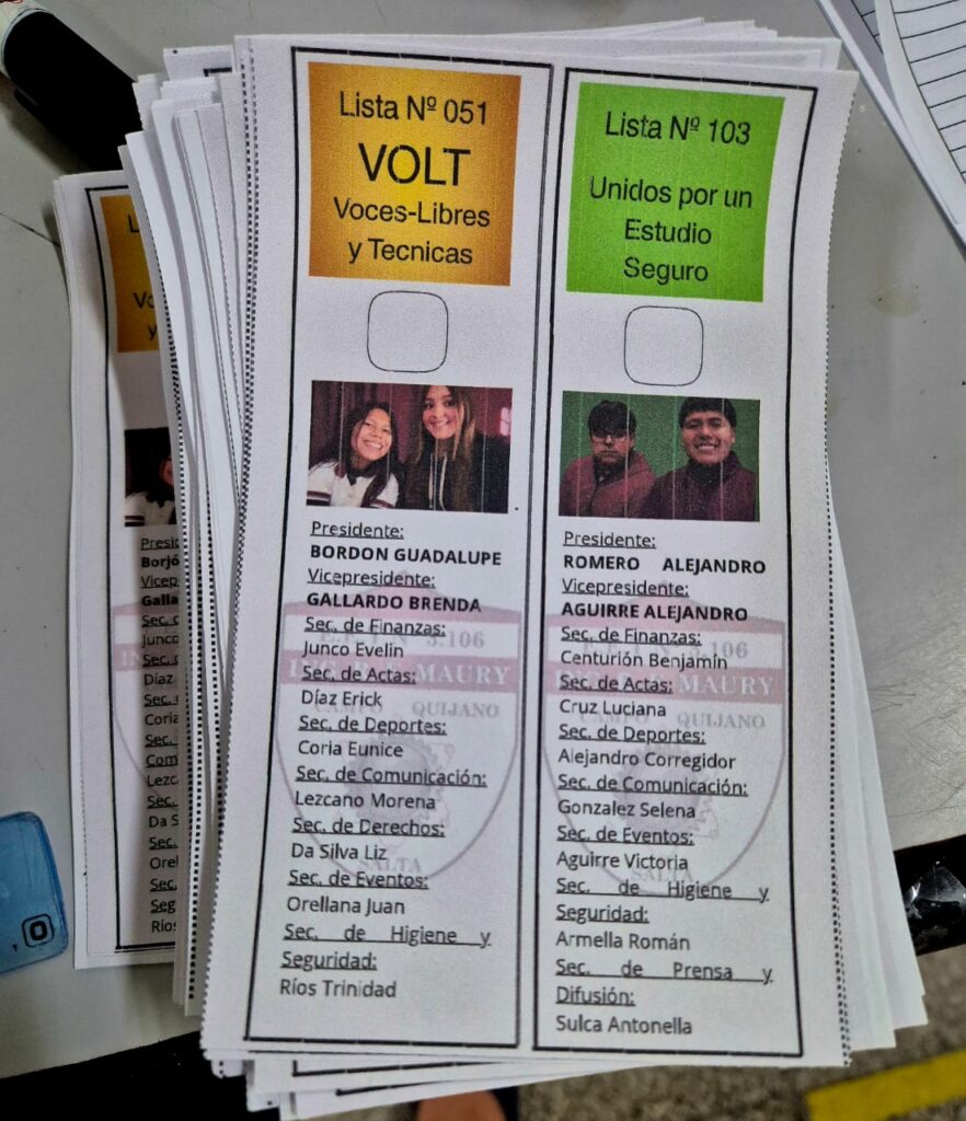Luego de una reñida jornada electoral, la comunidad estudiantil de la Escuela de Educación Técnica N°3106 “Ingeniero Maury” eligió a sus nuevas autoridades del Centro de Estudiantes. La Lista Dorado VOLT (Voces Libres y Técnicas) se impuso por apenas seis votos de diferencia, consagrando como presidenta a Guadalupe Bordón y como vicepresidenta a Brenda Gallardo para el período 2026.