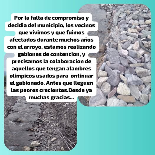 Ante la falta de respuestas y cansados de esperar promesas que no se cumplen, los vecinos decidieron organizarse y actuar por cuenta propia. En los últimos días comenzaron a construir gaviones de contención de manera comunitaria, difundiendo en redes sociales un pedido de ayuda solidaria.
