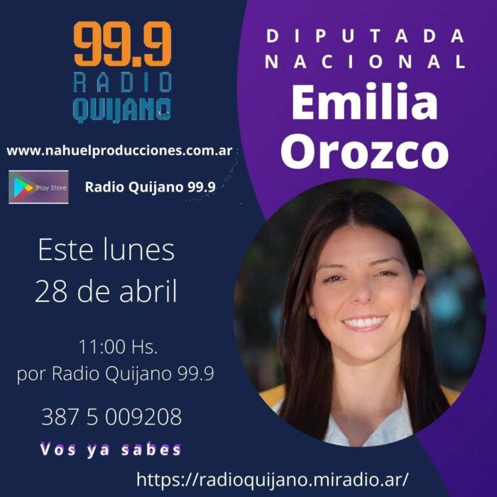 La diputada nacional María Emilia Orozco, licenciada en Ciencias de la Comunicación y representante de la provincia de Salta por el partido La Libertad Avanza, brindó una entrevista telefónica a Radio Quijano, donde respondió preguntas de la audiencia y abordó distintos temas de actualidad política.