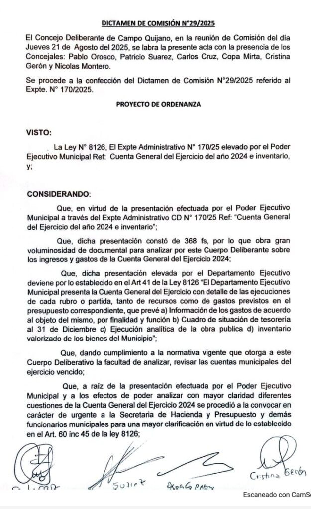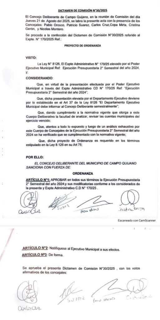 El Concejo Deliberante de Campo Quijano atraviesa un momento de fuerte controversia tras la aprobación del dictamen favorable a la Cuenta General del Ejercicio 2024 y la Ejecución Presupuestaria del segundo semestre, en un procedimiento marcado por irregularidades, contradicciones y ausencia de documentación oficial.