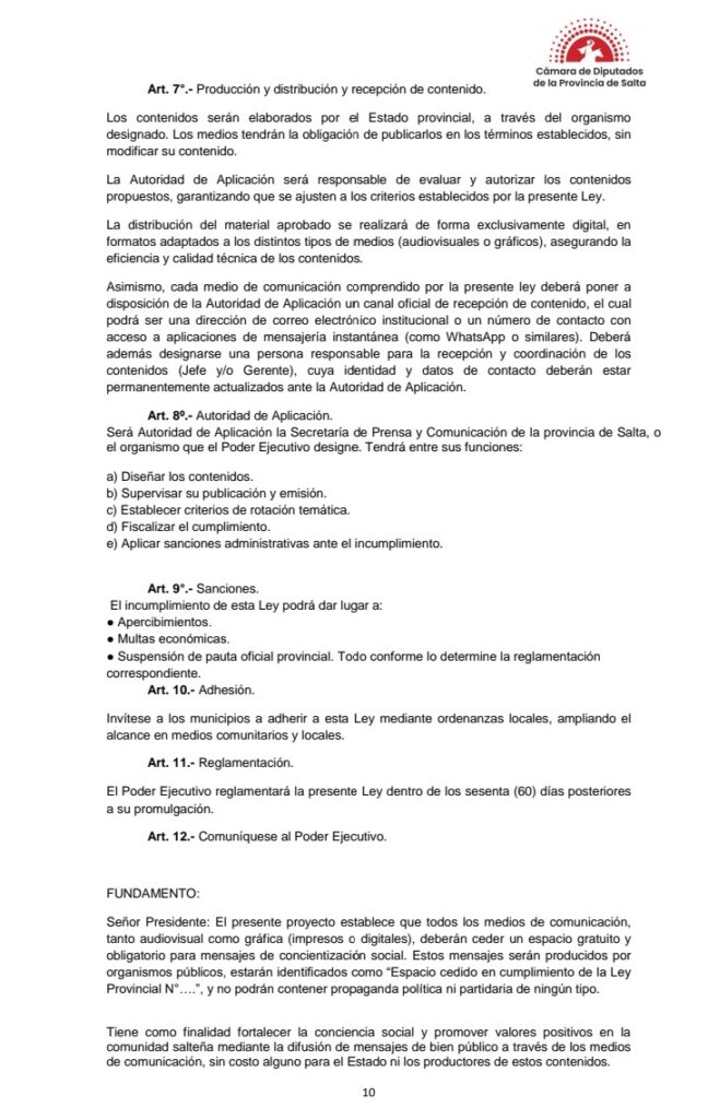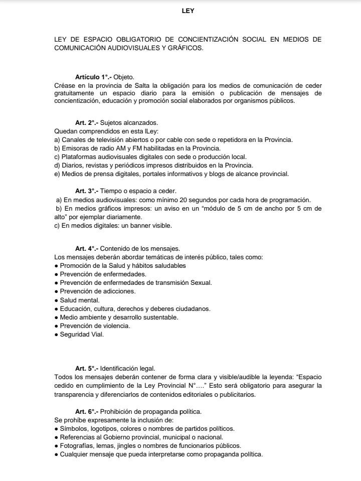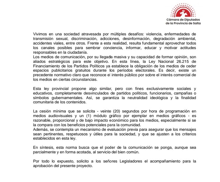 Desde nuestro lugar como medio de comunicación local, comprometido con la verdad, la pluralidad de voces y el bien común, queremos expresar nuestra profunda preocupación y rechazo al proyecto de ley presentado en la Cámara de Diputados de Salta que obliga a todos los medios audiovisuales, gráficos e informativos digitales de la provincia a ceder gratuitamente espacio para mensajes producidos por organismos del Estado.
