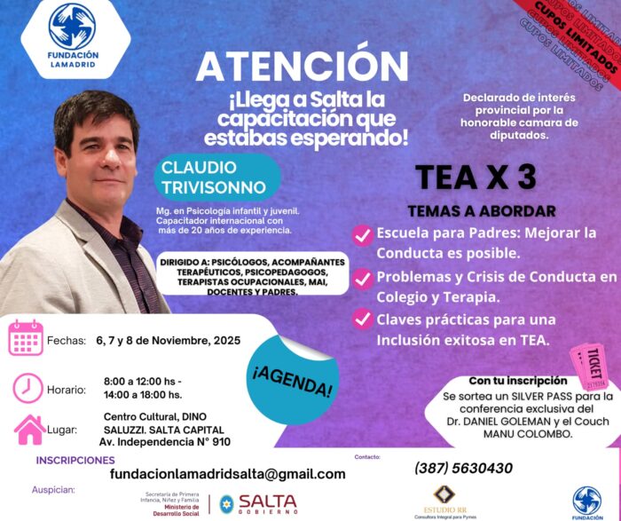 Radio Quijano dialogó telefónicamente con la Lic. Sandra Ríos, psicopedagoga y representante de la Fundación Lamadrid, quien invitó a la comunidad a participar de la jornada de prensa donde se presentará la capacitación “TEA x 3”, declarada de interés provincial por la Honorable Cámara de Diputados de Salta.