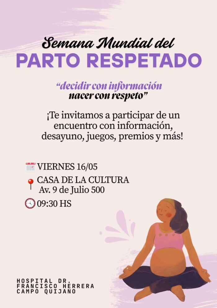 Semana Mundial del Parto Respetado: invitan a un encuentro en la Casa de la Cultura de Campo Quijano