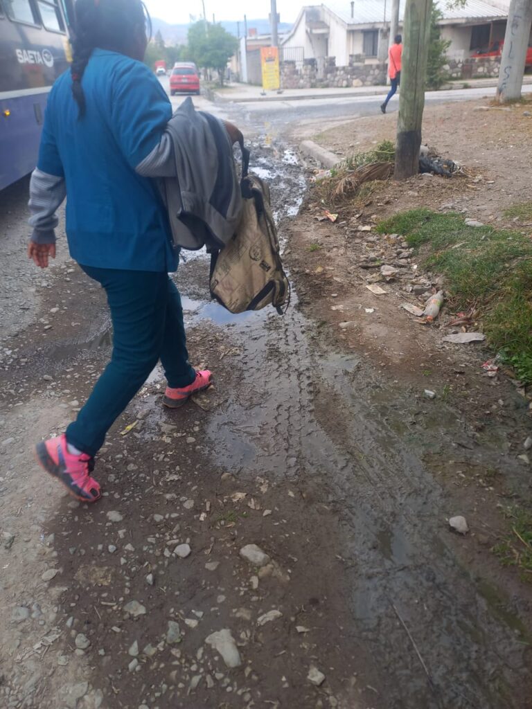 Según contaron quienes transitan la zona de las escuelas y colegios, la situación se genera por la falta de cloacas y por el agua de los lavarropas que van a la calle.