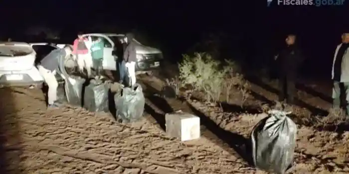 Tras una breve persecución, los uniformados hallaron el automóvil abandonado y huellas alrededor, las que indicaban que la fuga había proseguido en la moto y hacia el monte. Al requisar el rodado, se encontraron otros cuatro cajones de manzana, esta vez con un contenido de 100 kilos de marihuana.