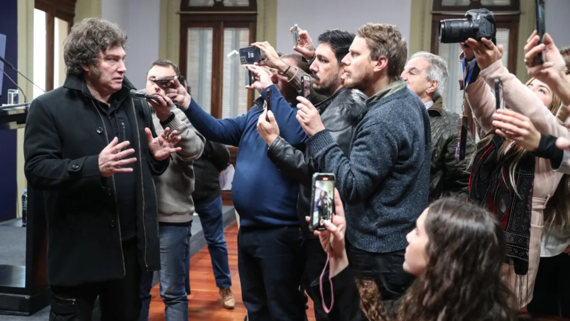 VIDEO. Javier Milei saludó a los periodistas acreditados y habló de la polémica de los alimentos, entre otros temas