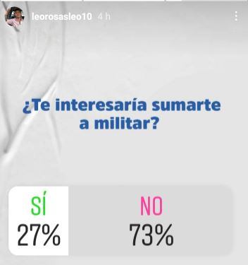 En una extraña encuesta de «Redes Sociales» (instagram) el Concejal Leo Rosas preguntaba si había gente interesada en militar para la próxima campaña 2021 siendo el resultado más que obvio.