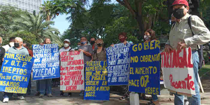 Miembros retirados de la Policía y el Servicio Penitenciario, protestaron en Plaza Belgrano porque no perciben los aumentos salariales establecidos para el personal activo de las instituciones y que por convenio también les corresponde a ellos.