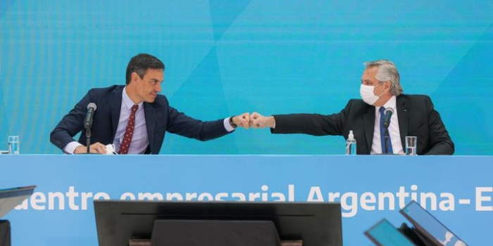 El presidente Alberto Fernández desató hoy una controversia que causó polémica y fuertes críticas tras brindar unas breves palabras tras el encuentro con el mandatario español Pedro Sánchez. Al hablar sobre el fuerte vínculo que hay entre España y la Argentina,