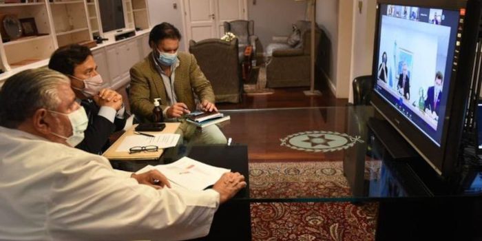Junto al mandatario salteño, participaron del encuentro virtual el ministro de Salud Juan José Esteban, el presidente del COE, Francisco Aguilar.