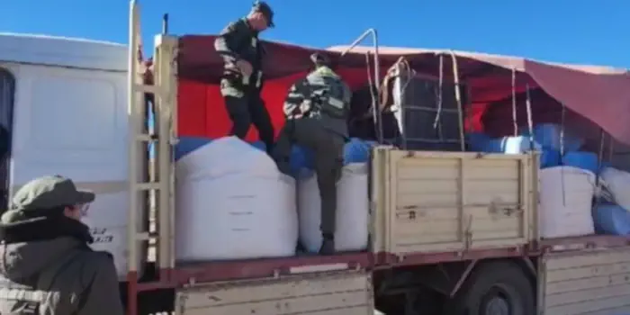 Los gendarmes descubrieron el valioso vegetal en la caja de un camión. El cargamento de hojas de coca estaba camuflado como material minero.