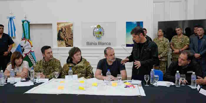El Gobierno nacional moviliza a Protección Civil, Gendarmería, Policía Federal, PSA, Fuerzas Armadas y bomberos para asistir a Bahía Blanca después del fuerte temporal que dejó 13 víctimas. YPF envía una estación de servicio móvil para garantizar el abastecimiento energético.