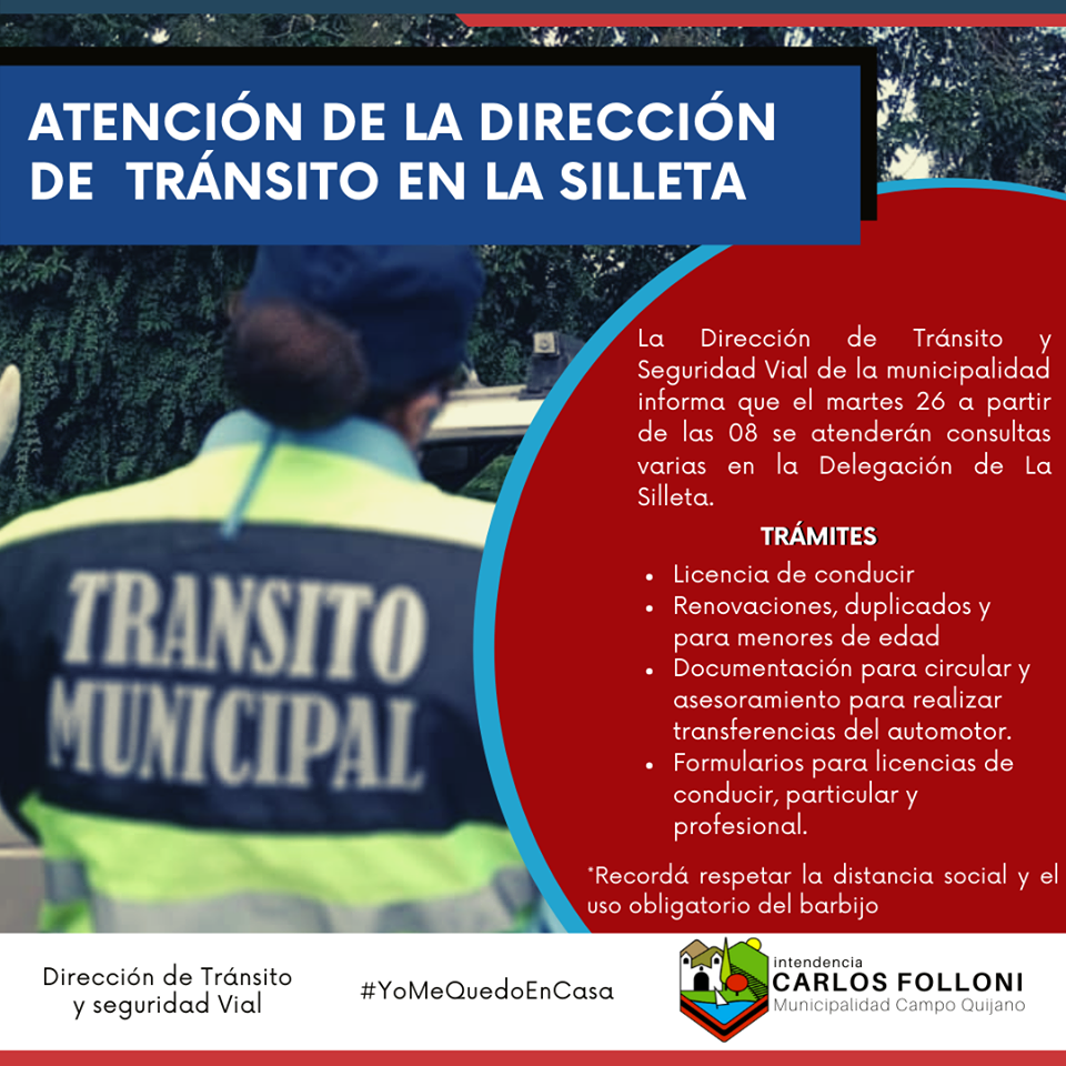 Por disposición del intendente Carlos Folloni se realizará atención de consultas de diversas áreas municipales en la Delegación de la Silleta a partir de este martes 26 de mayo.