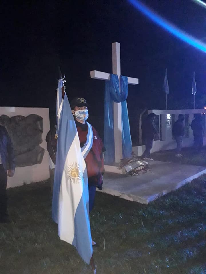 La invitación era simple pero significativa, solo la vigilia y guardia por aquellos soldados que cayeron en la Guerra de Malvinas, las Banderas de Ceremonia, palabras alusivas, antorchas y flores en cada una de las cruces y la ofrenda floral en la cruz mayor, que representa a todos los Héroes Argentinos.