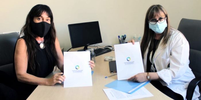 La ministra Verónica Figueroa y la licenciada Edith Benedetti, Interventora General, y representante del Hospital Nacional en Red “Lic. Laura Bonaparte”, en tanto Centro de Referencia Nacional en Formación y Asistencia en Salud Mental y Adicciones firmaron el convenio marco de cooperación por el cual ambas instituciones se comprometen a implementar espacios de formación y capacitación profesional; establecer mecanismos de segunda consulta y/o supervisión para casos que lo requieran y participar de acciones culturales y sociales.