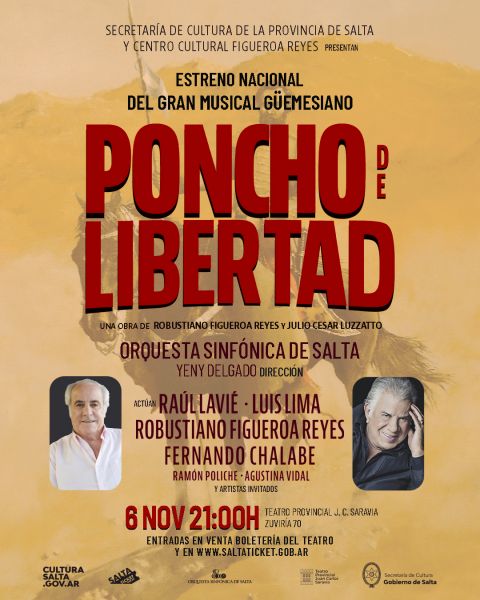 Con la participación de grandes artistas de la escena musical nacional y local, y la Orquesta Sinfónica de Salta; se podrá disfrutar de esta obra que enaltecerá la figura del General Martin Miguel de Güemes a doscientos años de su fallecimiento.