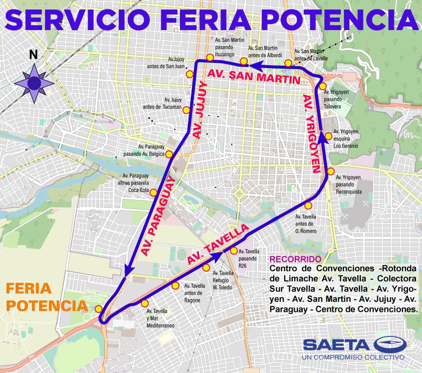 Al igual que el año pasado, SAETA pondrá a disposición de los usuarios y gratis, un colectivo ploteado con la frase POTENCIA que el sábado y domingo recorrerá un circuito directo que partirá del Centro de Convenciones de Limache hacia el centro de la ciudad con retorno a la Feria.