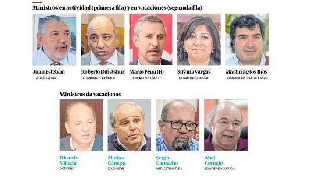 De nueve funcionarios de la cúpula del Grand Bourg, cinco estuvieron con agenda oficial esta semana.Villada, Camacho, Cánepa y Cornejo pidieron licencia o se tomaron días. Marocco sigue al frente de la Provincia.