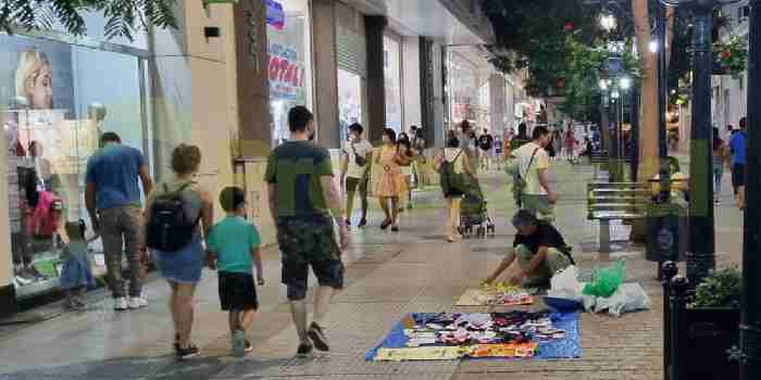 Transeúntes registraron a unos vendedores apostados en Peatonal Alberdi y Alvarado.