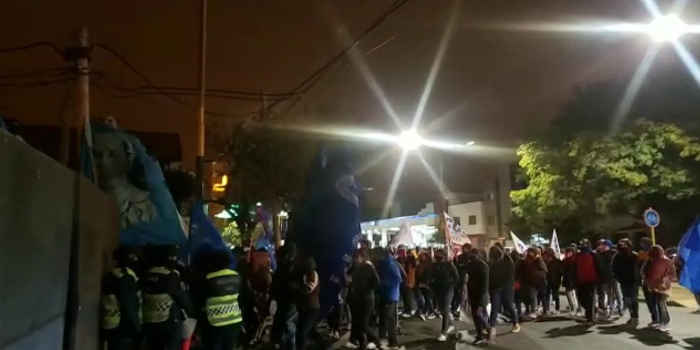 Un grupo nutrido de personas identificadas con colores celestes y banderas de la CCC logró llegar hasta el pie del monumento, donde se realiza el acto oficial por el Bicentenario del fallecimiento de Martín Miguel de Güemes